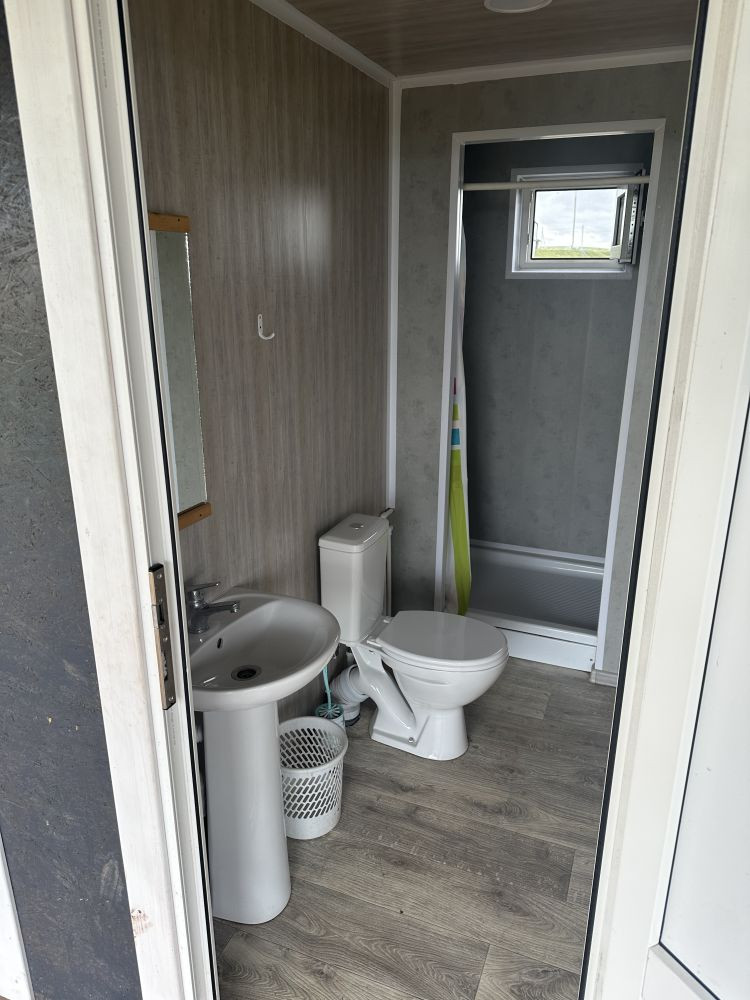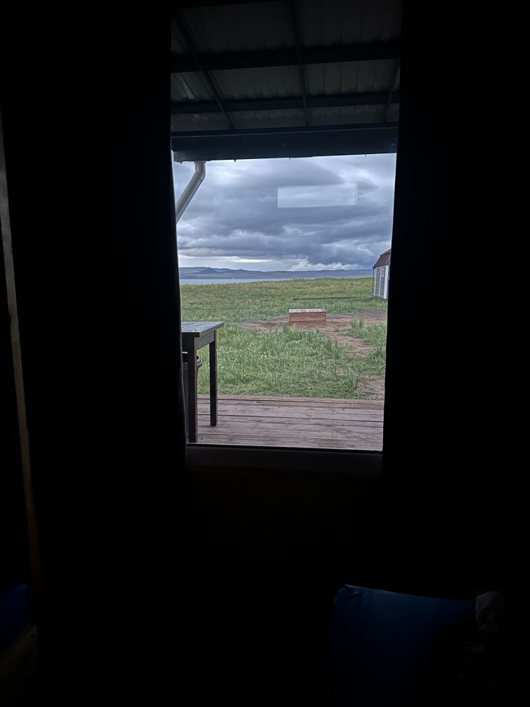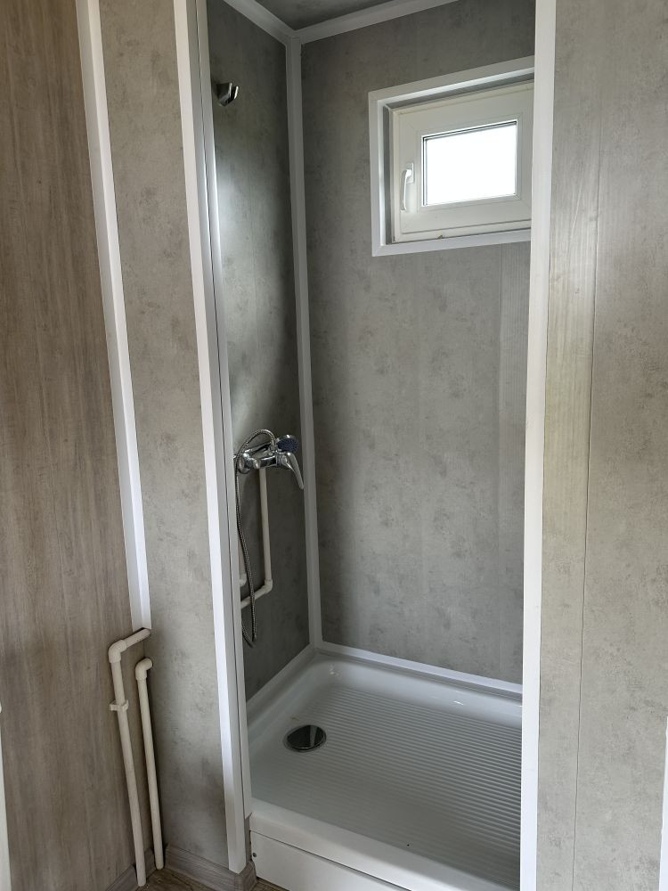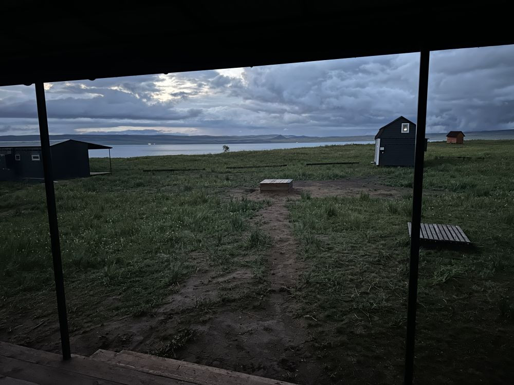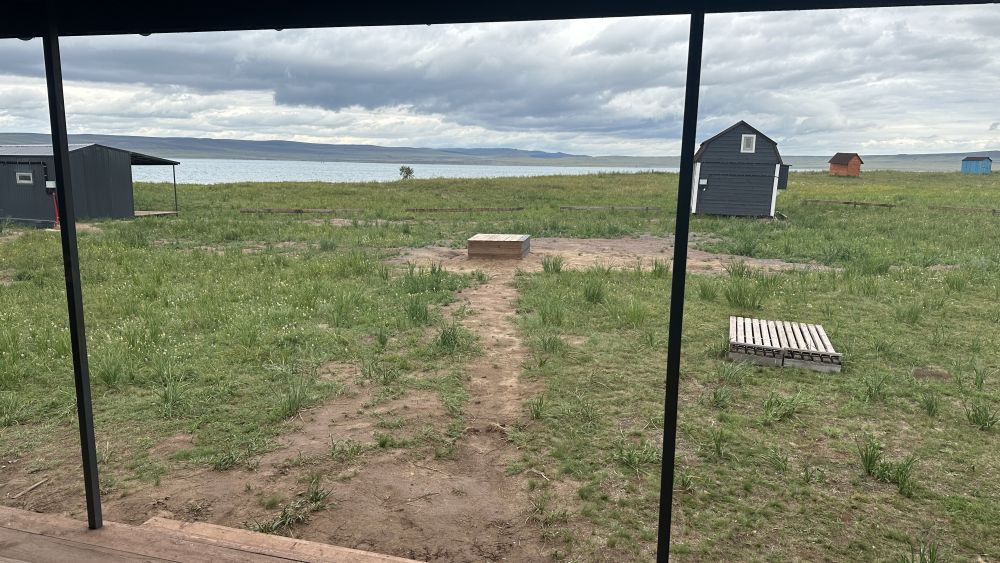 В домике - электричество, холодильник, чайник, собственный туалет и горячий душ. Перед домиком смонтирована деревянная площадка и навес. Рядом установлен мангал.