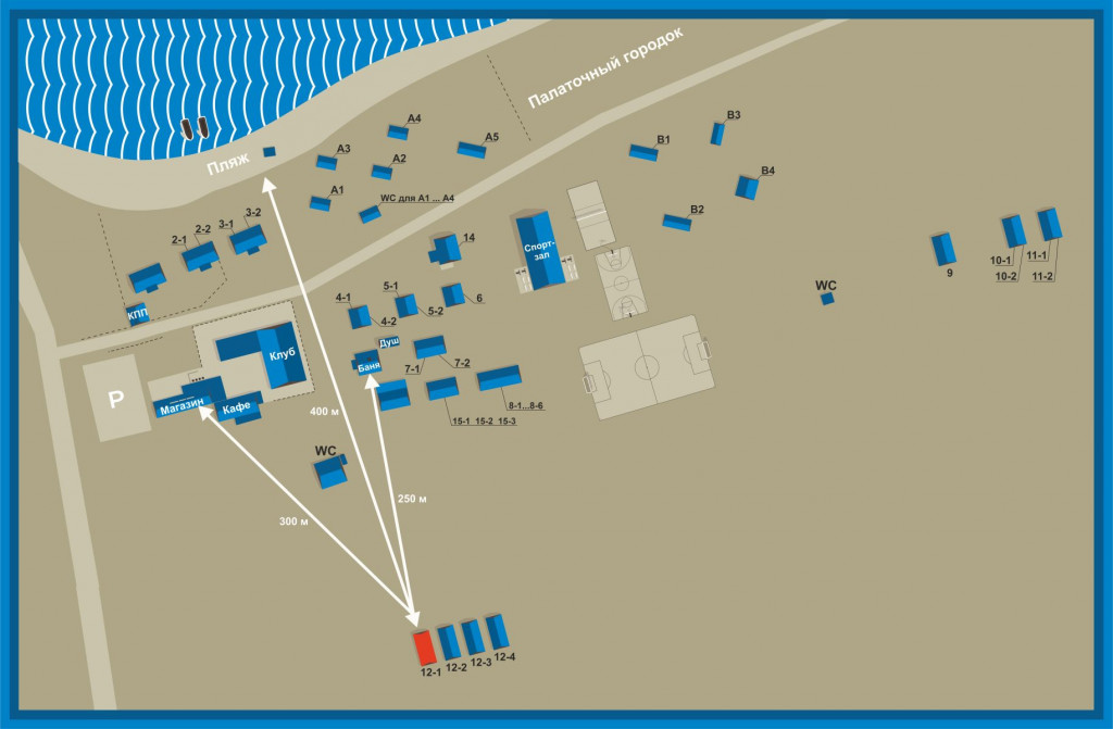 4 местный домик с видом на озеро и всю базу, 400 м до берега.